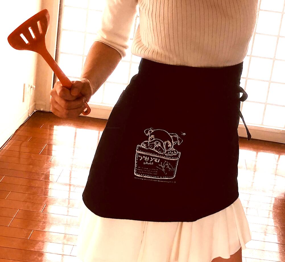 【ラスト1点】パグのサロンエプロン/カフェエプロン/ブラック フリー
