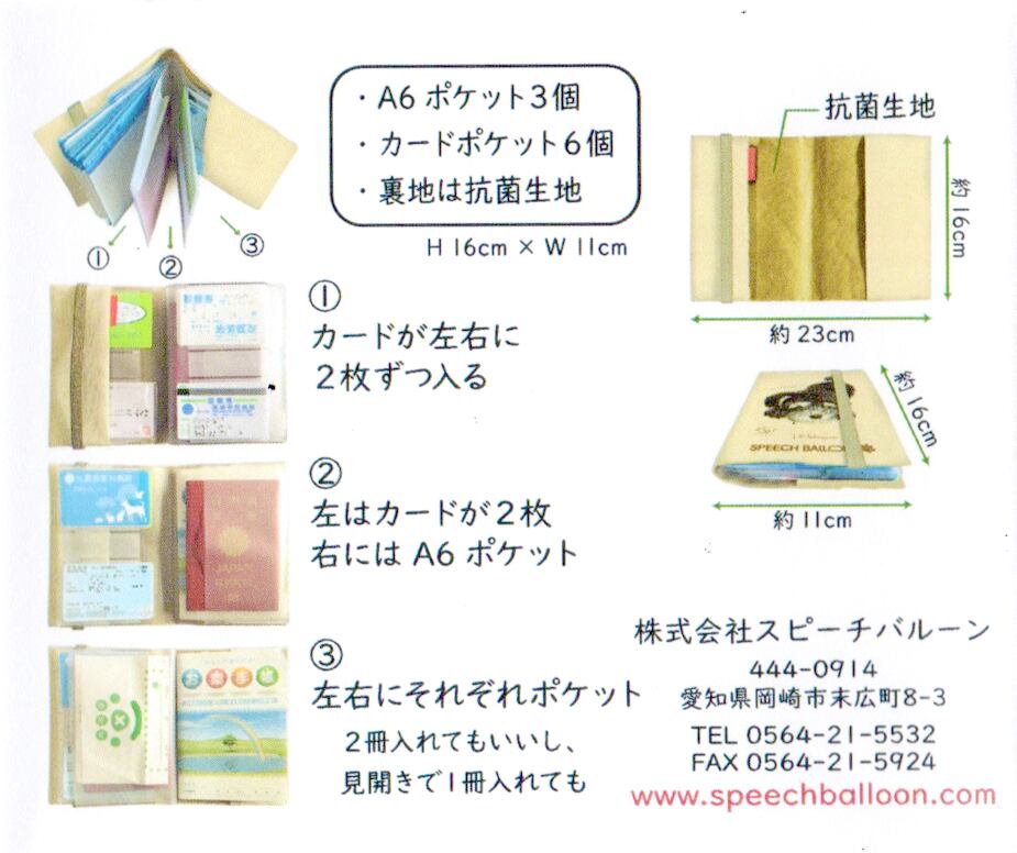 診察券や保険証の収納に便利なカードポケットを6個装備